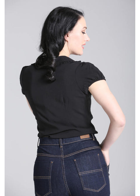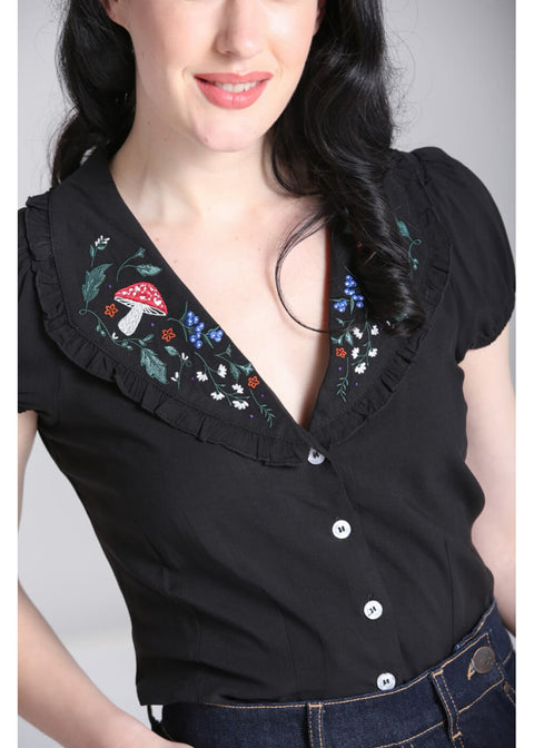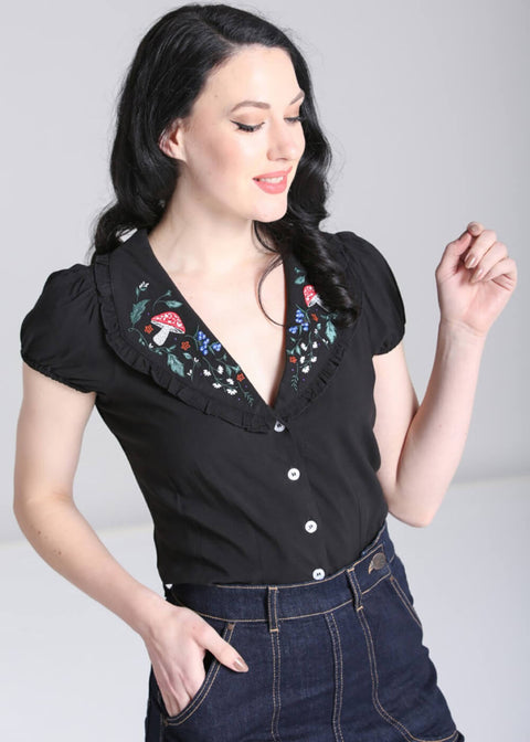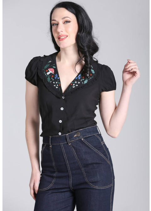 Hell Bunny Natura Mushroom 40's Blouse Black