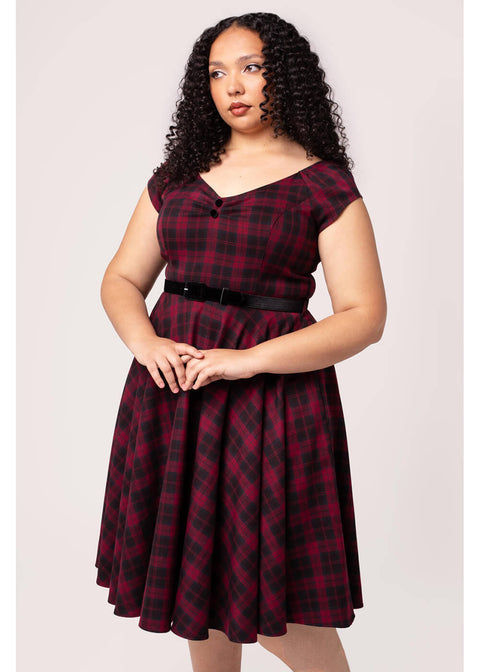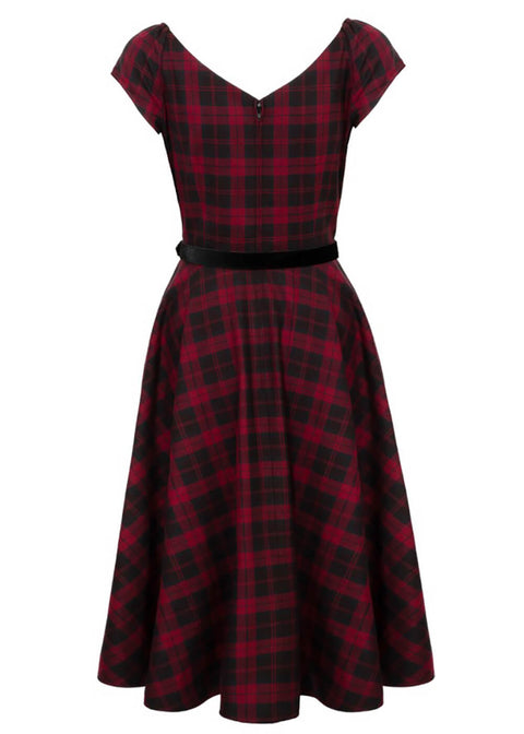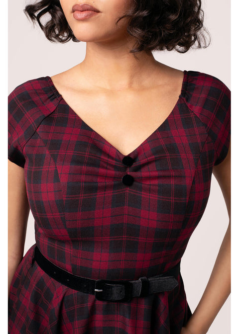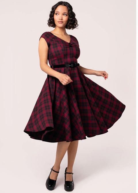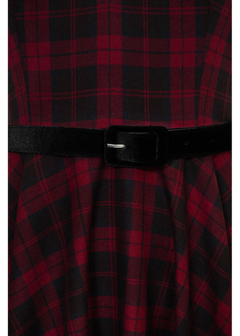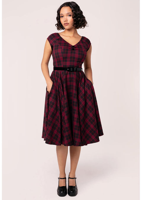 Hell Bunny Carmina Tartan 50's Swing Dress Burgundy