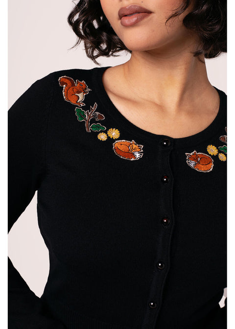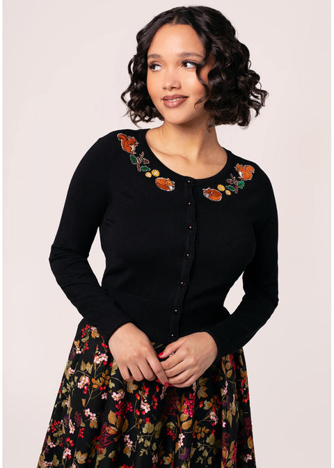 Hell Bunny Chester Squirrel Fox 40's Cardigan Black