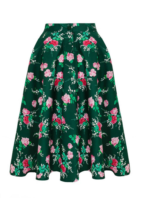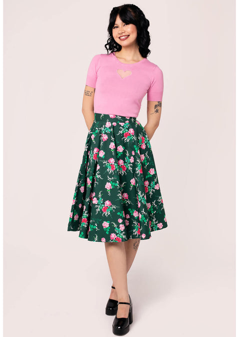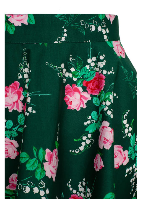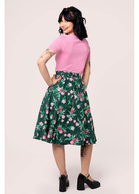 Whether it’s a shopping day in spring or celebrations in winter, Mabel is your go-to favorite every season! Her stunning pink roses pop against the dark green cotton blend, creating the perfect 50's vintage look to pair with all your favorite tops and cardigans. It’s undeniable; you’ve fallen for your retro sweetheart ♥