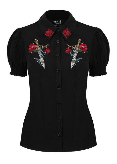 Hell Bunny Elyse Sword 40's Blouse Black