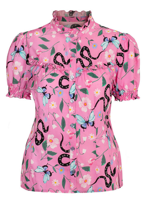 Hell Bunny Ma Boheme Snake 60's Blouse Pink