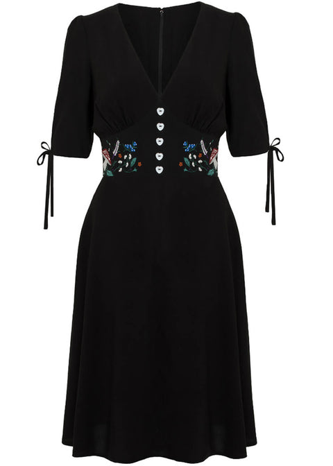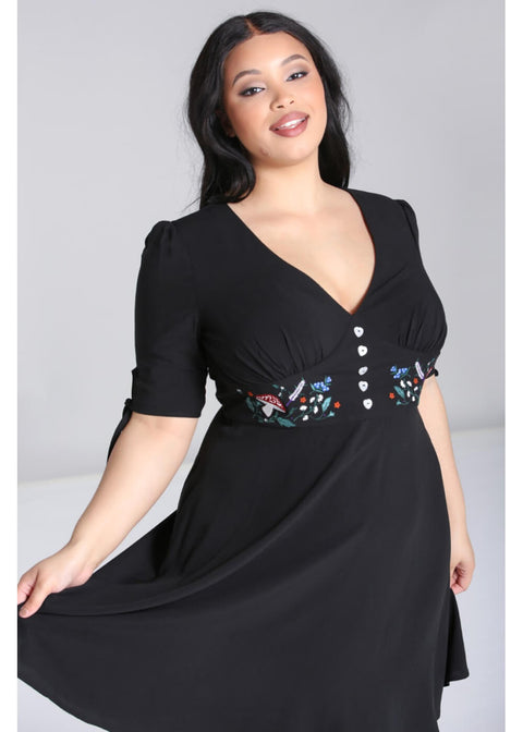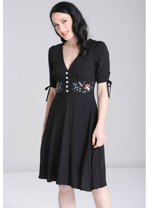 Hell Bunny Natura Mushroom 40's Swing Dress Black